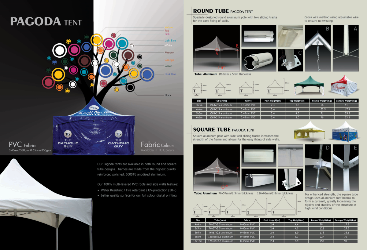 Product Instruction: Pagoda tent can be carried easily and perfect for many outdoor needs, such as weddings, camping, commercial or recreational use-parties, yard sales, trade shows and flea markets etc. With aluminum pole frame in polyester covering offers the ultimate shade solution. Enjoy to entertain your friends or family member in this great tent! This tent is sun-resistant and little rain resistant.
